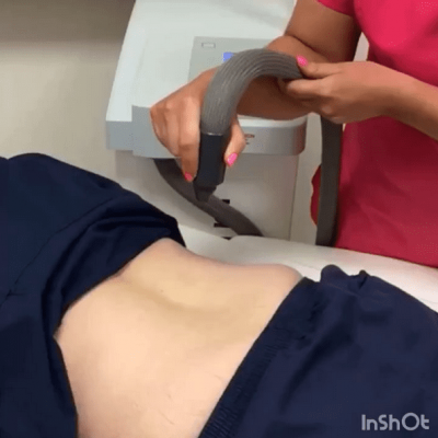 Instead of our Whole Body cryotherapy chamber, we use a handheld cryotherapy machine in one of our treatment rooms. It controls and directs a jet of super cooled air at your injury point to quickly trigger an anti-inflammatory response.